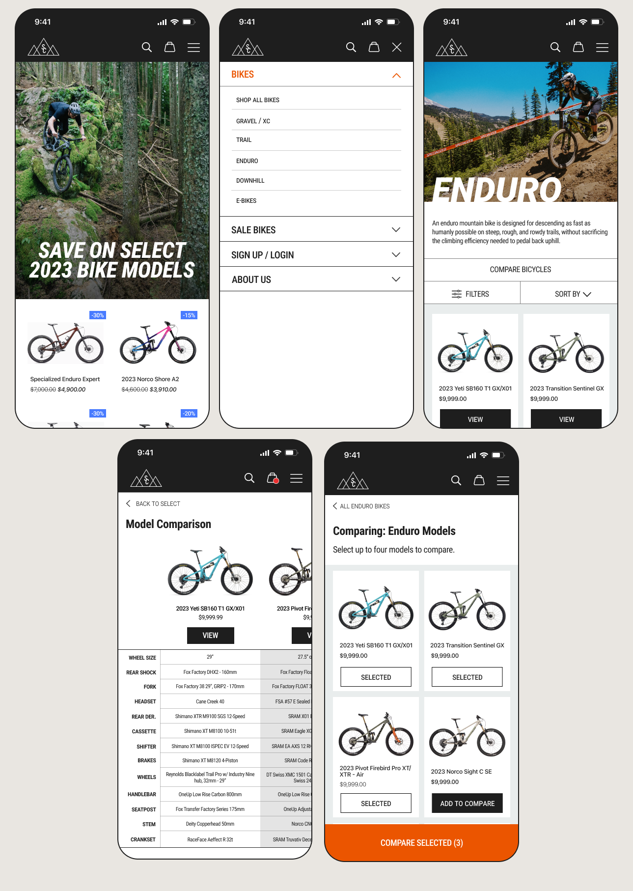 The results that were yielded from the initial round of testing were largely aesthetic-related, but also included minor usability issues. These findings ranged from: users having difficulty reading small fonts, to some users pointing out the lack of indication of knowing which bikes they had selected for comparison.